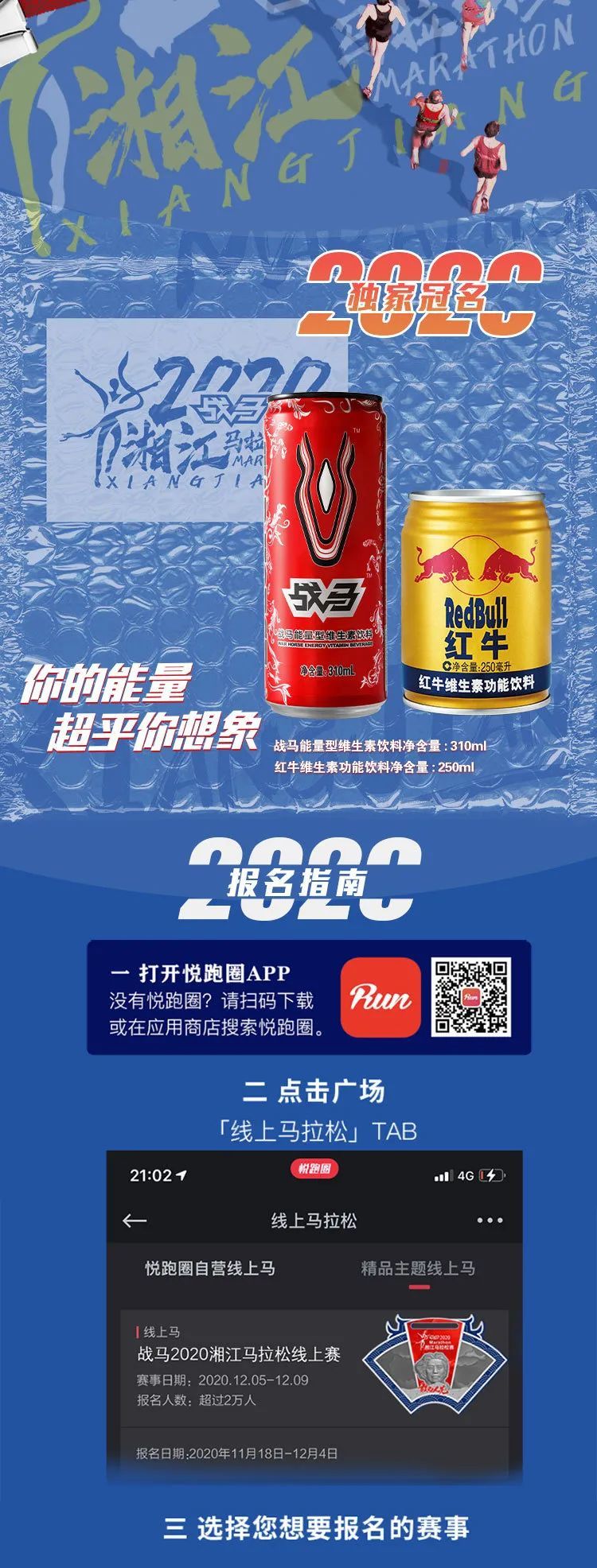 ? 報名途徑:選手們需登錄線上跑官方指定跑步類APP—“悅跑圈”-點擊「廣場」-「線上馬拉松」入口,選擇戰(zhàn)馬2020湘江馬拉松線上賽